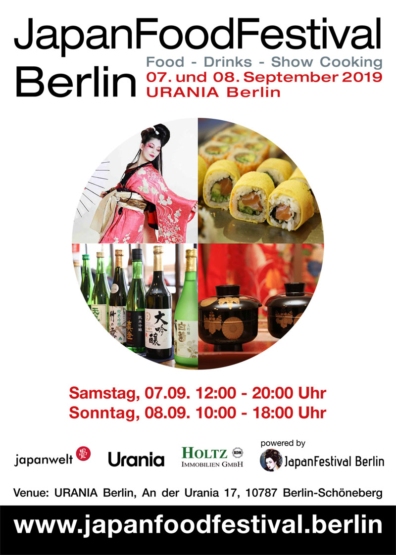 Berlin hat jetzt (s)ein JapanFoodFestival Berlin, und das ist einmalig in Europa! Vom 7. bis 8. September 2019 präsentiert das erste JapanFoodFestival Berlin in der URANIA die kulinarische Vielfalt aus dem Land der aufgehenden Sonne. Dabei gibt es neben den Klassikern Sushi und Sake unzählige japanische Spezialitäten, die nicht alle so bekannt und nicht so einfach zu bekommen sind. Christian Wagner, der das große JapanFestival Berlin erfunden und bereits 10mal erfolgreich veranstaltet hat, entwickelte die Idee auch wegen der beim JapanFestival Berlin ständig gestiegenen Nachfrage nach japanischen Köstlichkeiten: „Das JapanFoodFestival Berlin ist eine Entdeckungsreise für den Gaumen und im Spätsommer die kulinarische Ergänzung zum JapanFestival Berlin, das ja immer im Januar stattfindet. Im Erdgeschoss und in der 1. Etage der URANIA gibt es alle kalten japanischen Spezialitäten und unterschiedliche Getränke sowie „Japan Table Ware“ (Schalen, Tee-Zubehör, Stäbchen, Tischdekoration). Und auf dem Parkplatz wird wie bei einem original japanischen „Matsuri“ (= Festival) gebraten, gekocht und gebacken“.
